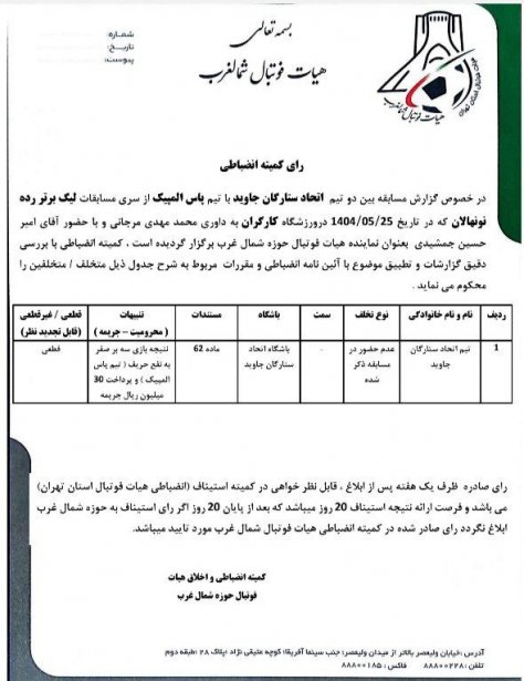 رای نهایی تیم اتحاد ستارگان جاویددر رده نونهالان