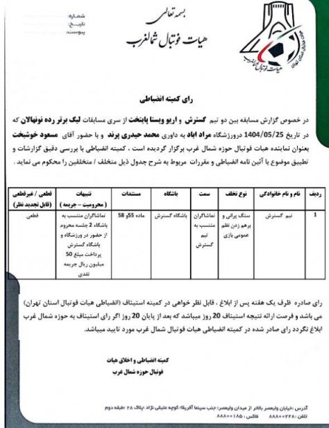 بعد از انتشار تمامی رای ها تا پرداخت نکردن هزینه و سپری نکردن مدت محرومیت فرد خاطی و باشگاه نمی‌توانند در سامانه پیرینت لیست خود را بگیرند. لازم به ذکر ا...